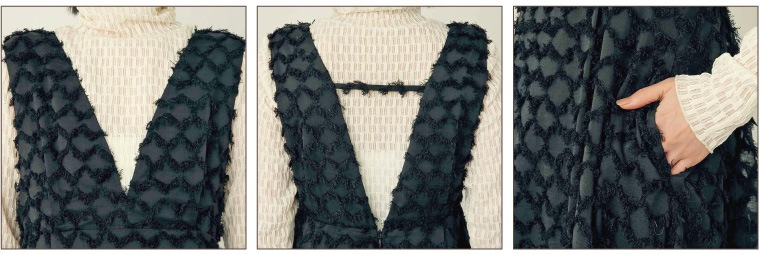 前後深めのVネックがデコルテとバックスタイルを美しく魅せます