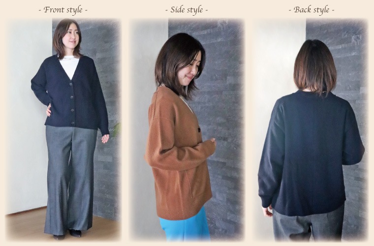 メンズライクでカジュアルなアイテムですが、カシミヤ混の柔らかな着心地が大人のリラックススタイルにおすすめです