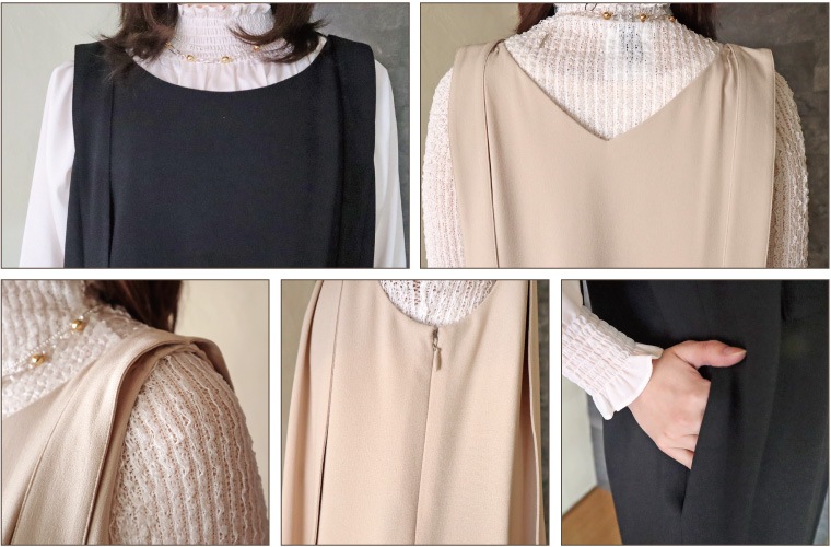 シンプルなIラインシルエットの中に、女性らしい柔らかさと軽やかさをプラスしています
