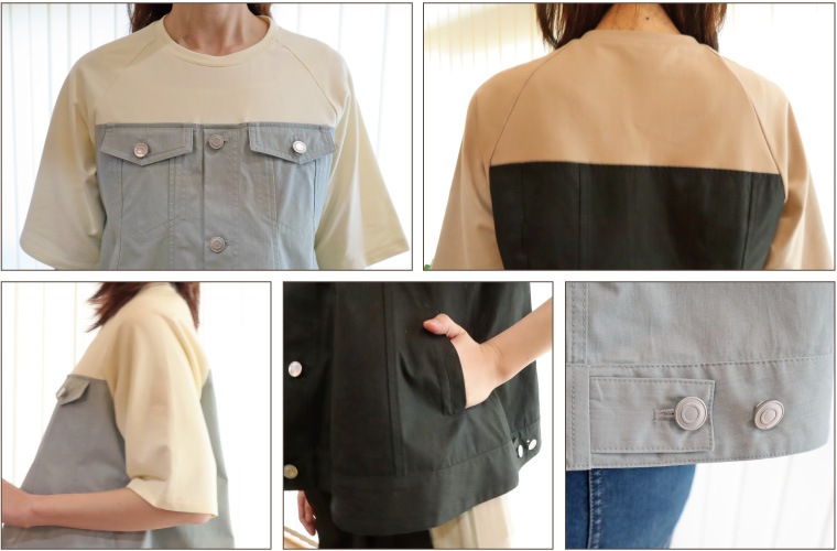 フロントボタンは開閉可能で着こなしアレンジ自在